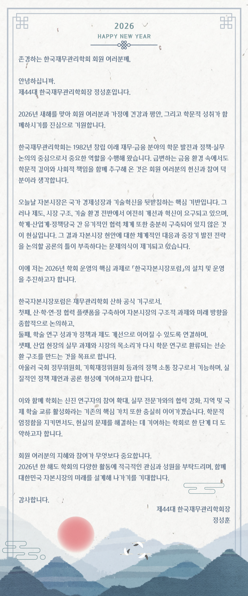 2026년 (사)한국재무관리학회 회장 취임인사드립니다