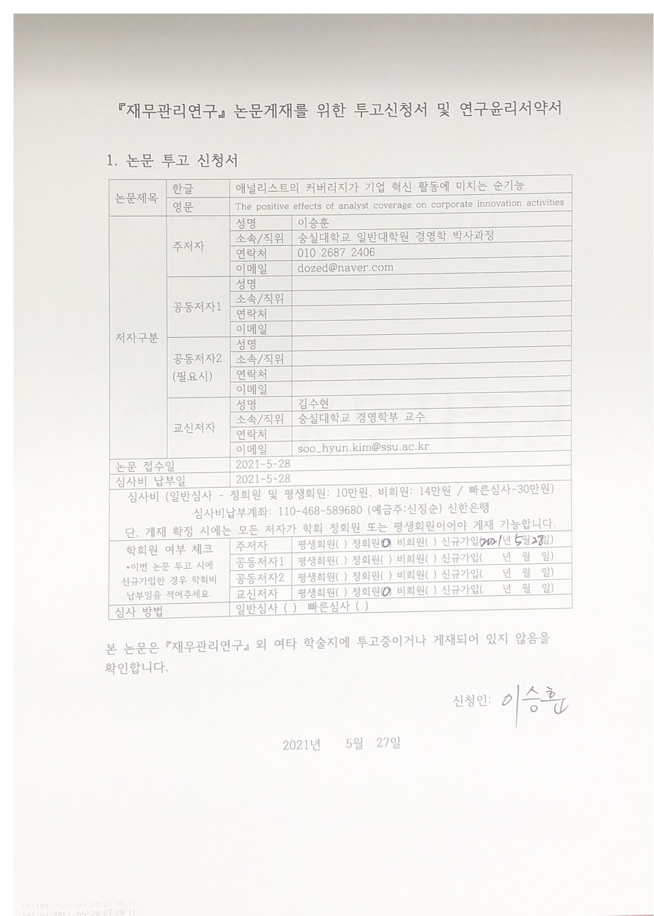 이승훈: 숭실대학교 일반대학원 경영학 박사과정, dozed@naver.com(주저자 )