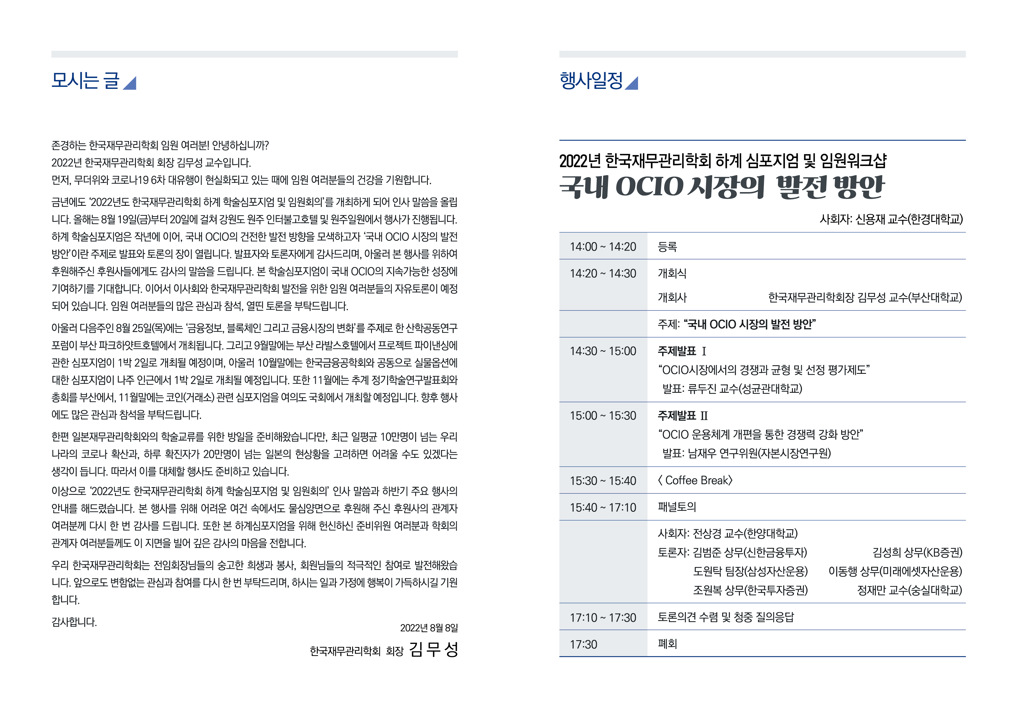 - 2022년 한국재무관리학회 하계 심포지엄 및 임원회의 -
